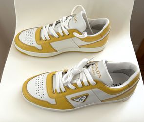 PRADA Men’s Downtown leather sneakers White/Mustard Yellow Size US 9.5 $425 $425Queens, NY