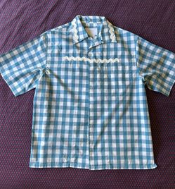 PRADA Gingham Blue Check Pattern short sleeve cotton shirt Men’s M $300$300Queens, NY