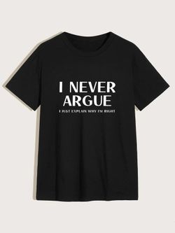 SHEIN - I NEVER ARGUE letter print Men’s cotton comfy T-Shrit - size M$7Miami, FL