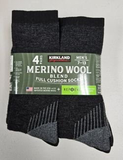 BRAND NEW: 4 PAIRS PACK OF Kirkland Signature Merino Wool Mens 7-13 Outdoor Hiking Trail Socks Full Cushion$25Portland, OR
