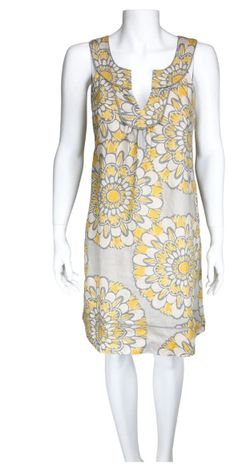 A breezy dress in airy linen with a sunny exploded floral print and matching piping.