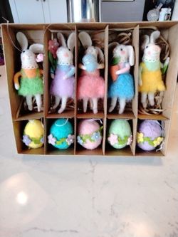 Balsam Hill Bunnies And Blooms Easter Spring Felt Ornaments Set$20Oak Harbor, Washington