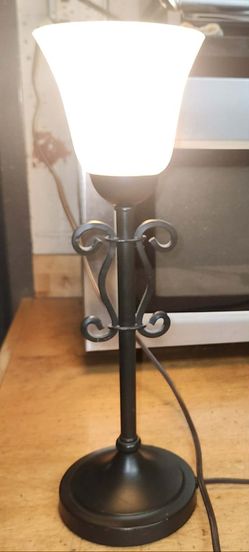torchiere table lamp featuring a dark bronze finish and a marbleized alabaster glass shade. $20Chicago, IL