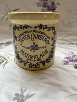 Antique James Carberry Marmalade Stoneware Advertising Crock London 5.25"$35Placerville, CA