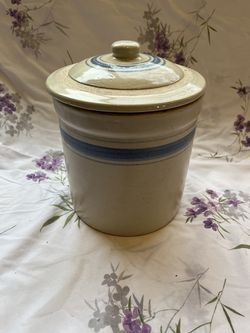 Vintage Beige with Blue Stripes Stoneware Lidded Jar/Container$35Placerville, CA