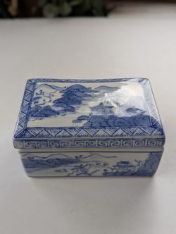 Chinese Porcelain Square Trinket Jewelry Box Blue Transfer$75La Verne, CA