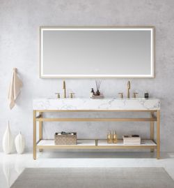 72 in. W x 22 in. D x 33.9 in. H Double Sink Bath Vanity in Brushed Gold with Engineered Composite Stone Top$500Santa Monica, CA
