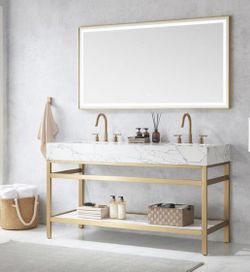60 in. W x 22 in. D x 33.9 in. H Double Sink Bath Vanity in Brushed Gold with White Stone Top$400Santa Monica, CA