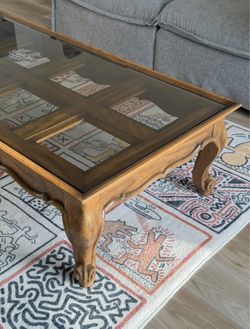 Restored Antique 1970s Solid Red Oak Coffee Table with Custom Removable Glass Inset Tabletop$375Fullerton, CA
