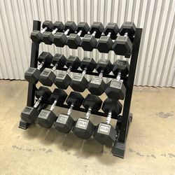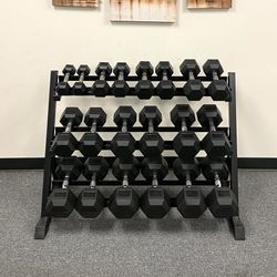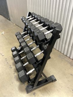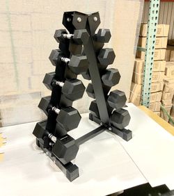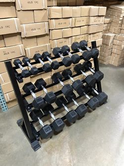 New In Box 5-50lb Rubber Hex Dumbbells With 3 Tier Dumbbell Rack Weights Gym Equipment$685Anaheim, CA