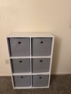 White 6-Cube Storage Organizer with Grey Bins – Great Condition!$35Modesto, CA