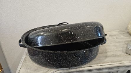 Granite Ware Black Enamel Oval Roaster with Lid – 18" Large Covered Roasting Pan