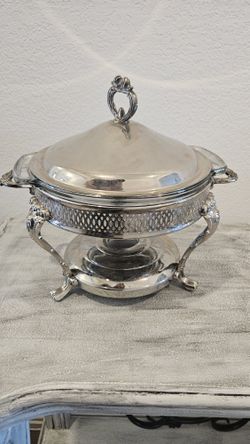 Vintage Silver-Plated Serving Dish with Glass Insert and Lid – Elegant Footed Buffet Server