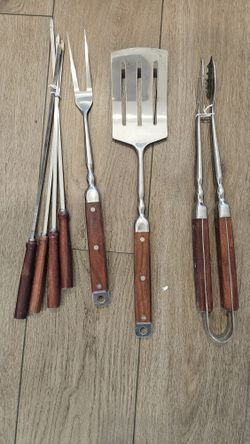 10-Piece Vintage Barbecue Tools Set with Wooden Handles
