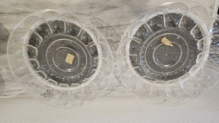 Set of 2 Clear Plastic Punch Bowls with Scalloped Design on Rotating Stand