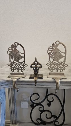 Set of 3 Metal Stocking Holders – Elegant Silver Bell and Fleur-de-Lis Designs