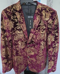 Chaqueta De Vestir Floral Para Hombre Con Solapa Medida Chica Color Guinda Con Dorado $18Los Angeles, CA