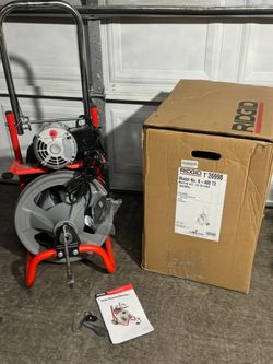 Ridgid K-400 Drain Cleaning Snake Auger Machine, C-45 IW 1/2 in. x 75 ft. Cable inside Drum plus 4-Piece Tool Set $500Des Plaines, IL