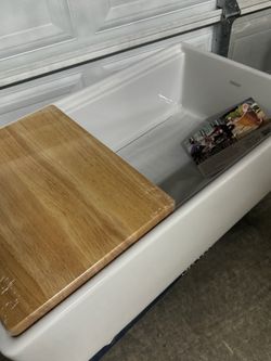 Sincokology Bradstreet II 33 in. Farmhouse Apron Front Undermount Single Bowl Crisp White Fireclay Workstation Kitchen Sink