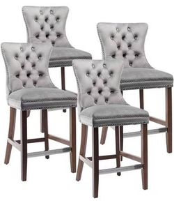 Virabit Set of 4 Velvet Bar Stools with 27 Inch Wing Back with Back Button and Nail Head Trim, Upholstered Bar Chairs with Wooden Legs, for Kitchen$190El Monte, CA