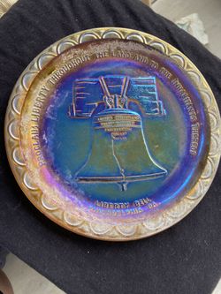 Marigold/ Blue Carnival Glass 8" LIBERTY BELL Commemorative Plate$5El Monte, CA