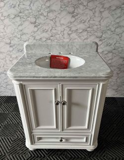 30-in White Freestanding Single Sink Bathroom Vanity with White Top and Three Drawers $359Rancho Cucamonga, CA