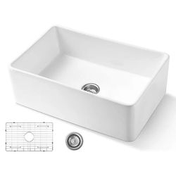 Farmhouse Sink 33 in. Single Bowl Gloss White Fireclay Kitchen Sink Apron Sink with Strainer and Bottom Grid Barn Sink$199Rancho Cucamonga, CA
