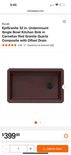 32 in. Undermount Single Bowl Kitchen Sink in Carnelian Red Granite Quartz Composite with Offset Drain$199Rancho Cucamonga, CA