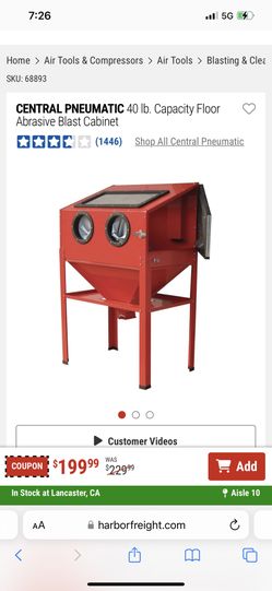 CENTRAL PNEUMATIC 40 lb. Capacity Floor Abrasive Blast Cabinet$150Palmdale, CA