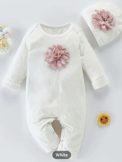 Christmas Baby Girl Sweet Flower 3D Design Long Sleeve Jumpsuit & Hat+ Pink Socks$15Wheeling, IL