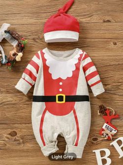 2 PCs Christmas Print, Long Sleeve Romper With Hat ,Size 3-6 Month$8Wheeling, IL