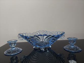 Cambridge Caprice Moonlight Blue Bowl & Candle Holders$145Bedford Park, IL