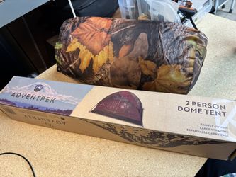 New Adult Sleeping Bag and Two Person Dome Tent Sleeping bag is camouflage color Tent is a burgundy color $45Rialto, CA