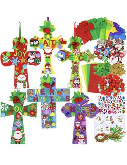 24 Sets Christmas Craft Kits DIY Christmas Cross Ornaments Decorations Art Sets Snowman Snowflake Christmas Foam Stickers Arts and Crafts for Kids Par$10Fontana, CA