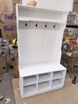 FUFU&GAGA White Painted Armoire with Bench and Storage Cubbies,39.8 in W-17.3 in D-67.1 in H$90Pomona, CA