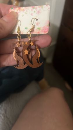 Handcrafter's Carved Wood Wolf Howling at the Moon Earrings on Hand Carved Hanger$25Perris, CA