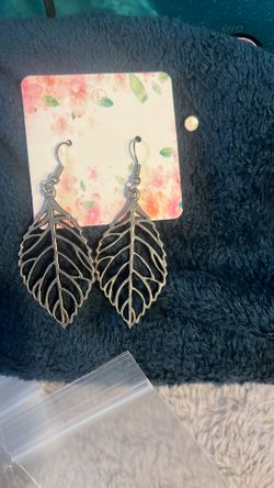 These are likely silver-toned filigree leaf dangle earrings with a black inlay. The design features an open-work silver-tone metal outline of a leaf w$25Perris, CA