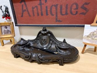 Charming Antique Large French Gilt Bronze/Resin INKWELL/Late 19th Century Faded Grandeur Antique Desk Office Adornment Chateau Style Home Office Decor$75Oceanside, CA