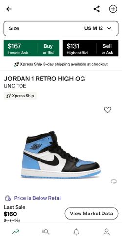 Air Jordan 1 Retro High OG UNC Toe Size 12 Brand New Original Everything!$150Rialto, CA