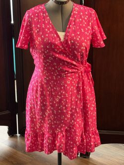 Women's Medicum Wrap V-Neck Short Sleeve Fuscia and White Ruffle Dress$12Phoenix, AZ
