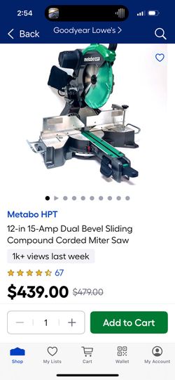 Metabo HPT Slide Compound Miter Saw$250Tolleson, AZ