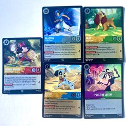 Lorcana Reign of Jafar Promo Set: Lady, Aladdin, Patch, Pull The Lever, & Minnie$30San Gabriel, CA