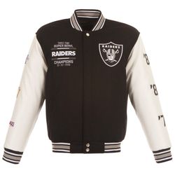 RAIDERS SUPER BOWL REVERSIBLE FAUX LEATHER SLEEVED WOOL JACKET - Large$200Fremont, CA