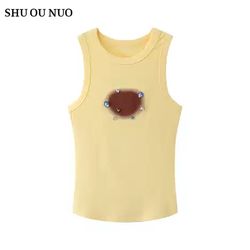 Yellow tank top with fake diamonds for women$10Saint James, NY