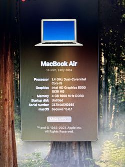 Apple MacBook Air 11”.$150St. Louis, MO