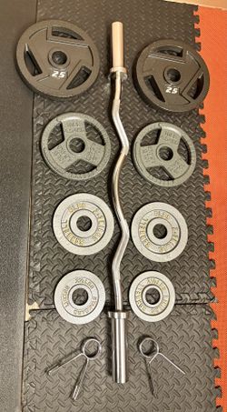 NEW Olympic Equipment Curl Bar of 20# with Cooper Bearings and Plates 2X35s, 2X25s, 2X10s and 2X5s pounds. Brute 170#$250Los Angeles, CA