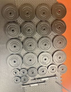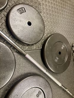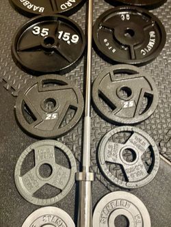 Full Set of Olympic Plates with Brand NEW 7 ft Steel Barbell with Cooper Bearings [ Plates from 45s to 2.5s] Brute: 287 #$375Los Angeles, CA