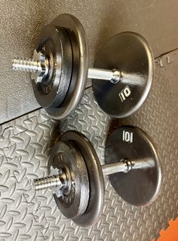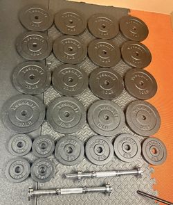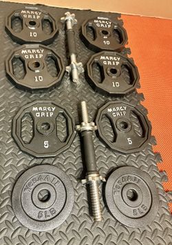 NEW Set of Cast Iron Adjustables Dumbbells With Weight Plates: 10s and 5s pounders. Brute W: 70 #$90Bell Gardens, CA