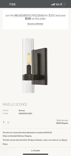Ravelle Bronze Sconce Restoration hardware$300Whittier, CA