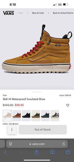 Vans Sk8 Hi Waterproof Insulated Shoes Tan Suede $60Whittier, CA